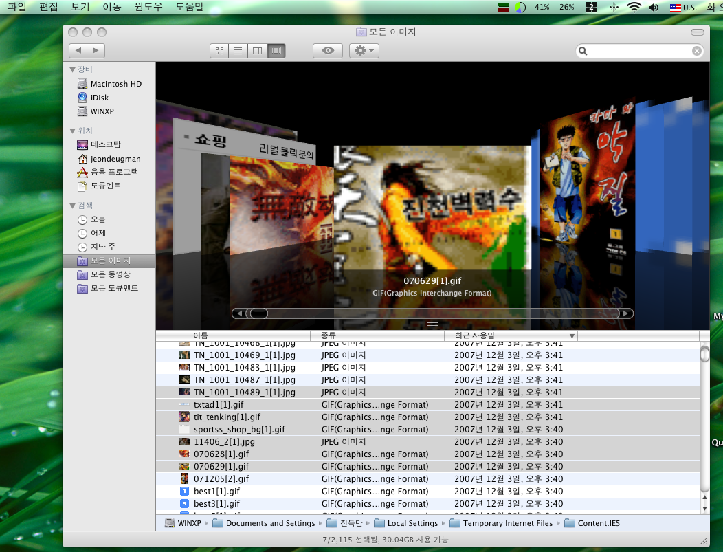 그림, 동영상, 도큐멘트의 모두를 어제 오늘 지난주로 모아둔게 있다.