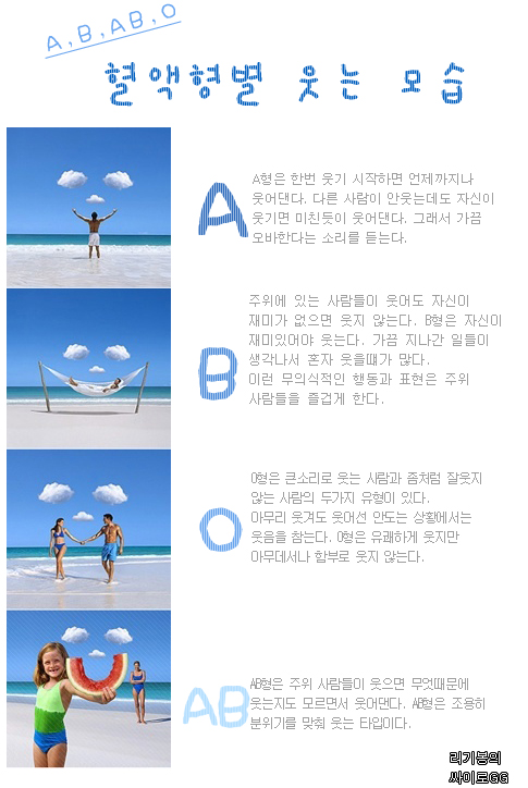 나 오형인데...완전 A형처럼 웃는다는거~ㅋㅋㅋㅋ