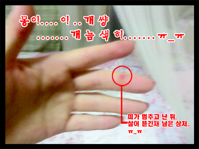 쑤바 손 찍어서 피 왕창 내놓고도...
