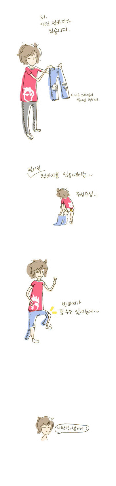 뚫어진 청바지 볼 때 마다 '저거 입다가 넘어지지는 않을까?...' 생각 함. =,.=;; (뚜시궁~!)