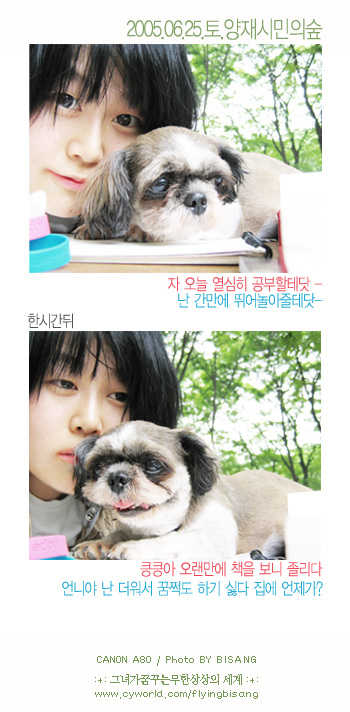 ㅋㅋㅋㅋ 비상아~ 사진이 넘 예쁘게 나왔당. 귀여워 죽겠어 ^^ 그리고 그 강아지는 시츄인가보네.