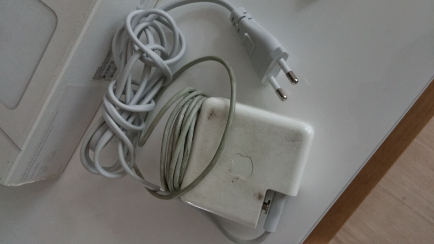 레티나 아니며, 전원어답터는 고장나서 이전 버전의 어답터를 대체 했음 (사진참고)
