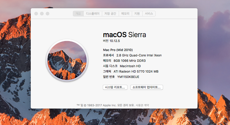 맥os는 최신 시에라 설치됨