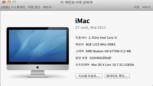 2012년 3월 구입한 아이맥 27인치 입니다.