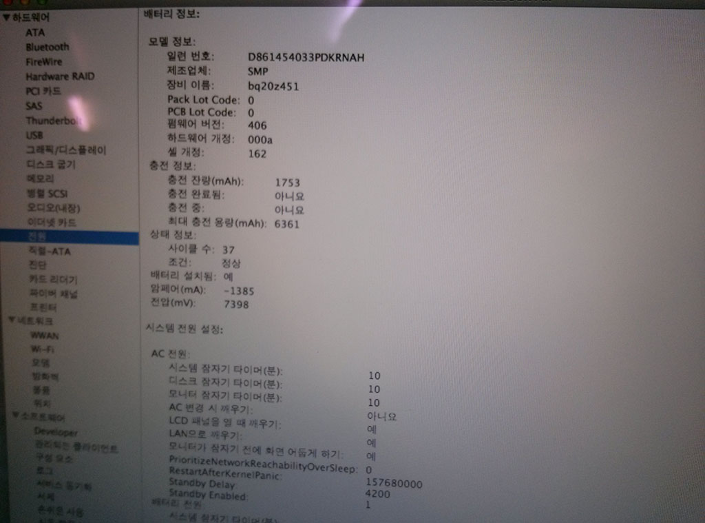 배터리 사이클 수는 현재 37이며, 더 이상 사용하지 않을 것이라, 그림과 동일한 상태를 유지할 것 입니다.
