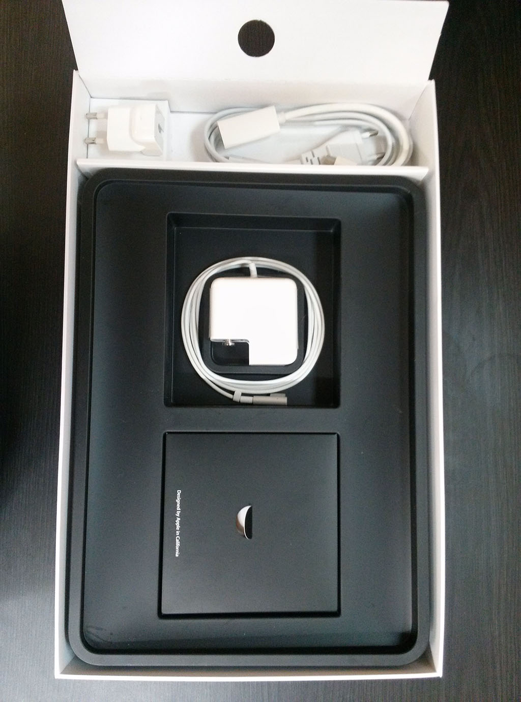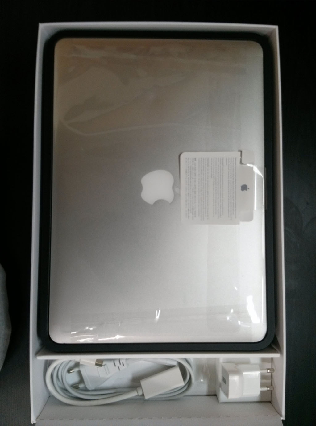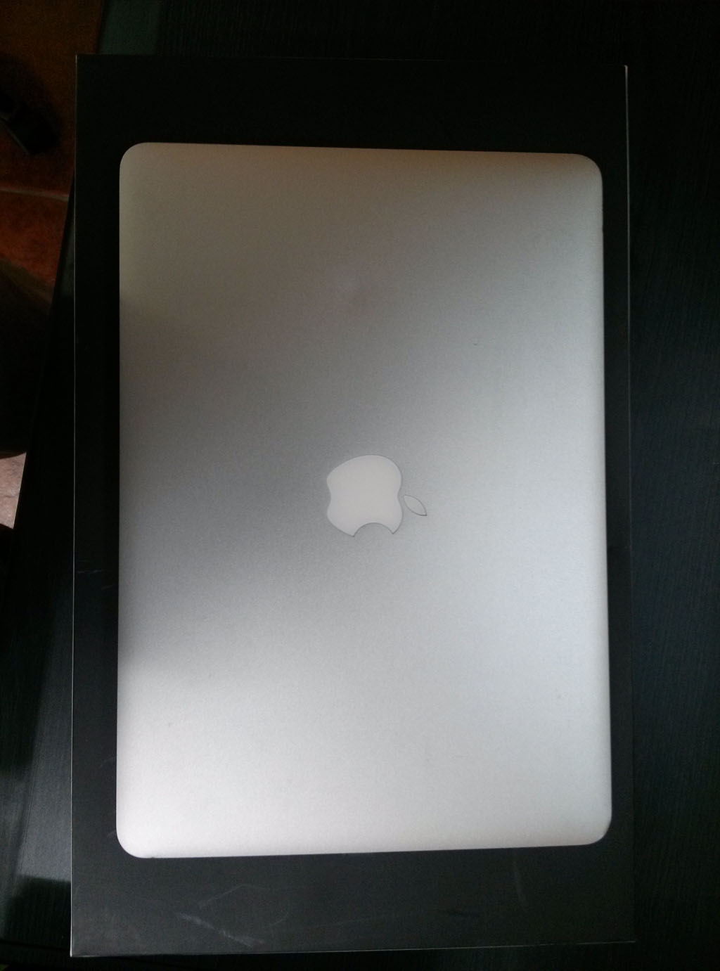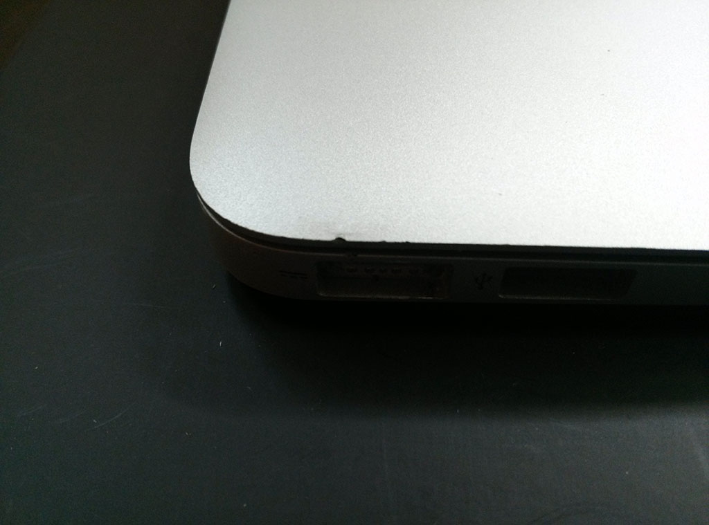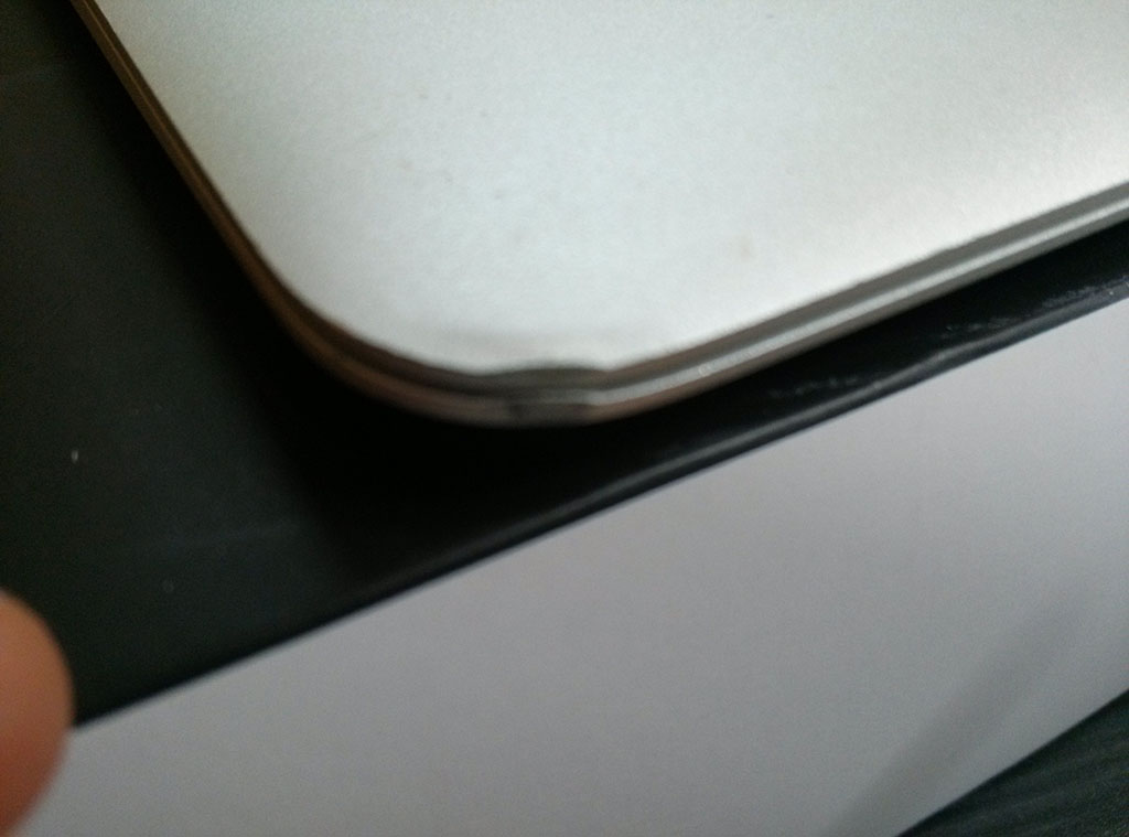 애플 로고 위쪽으로 약간 눌린 흔적이 있습니다.