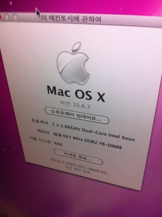 MacPro 2 x 2.66GDual core intel xeon 8g RAM 팝니다