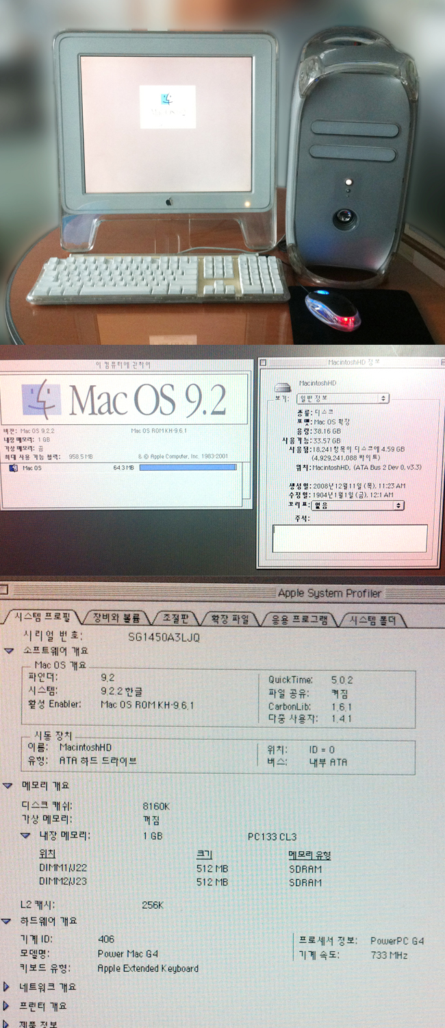 <1set> G4 733 본체 + 애플키보드 + 일반마우스 + 애플모니터 = 판매희망가 38만원 (직접수령 35만원)