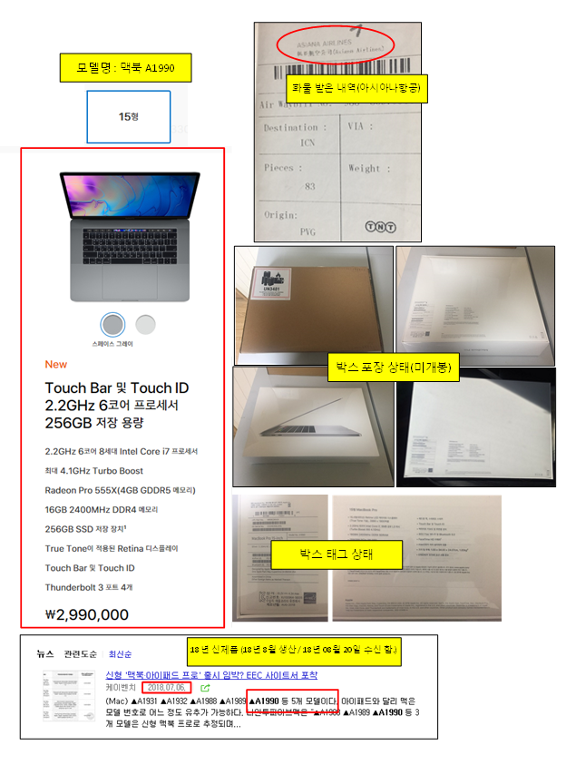 이번에 신제품 출시된 올해 18' 8월형 맥북 A1990모델 팝니다.