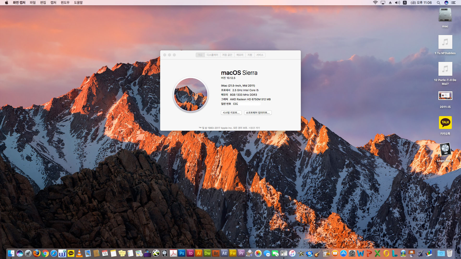 맥os 10.12 시에라 설치됨