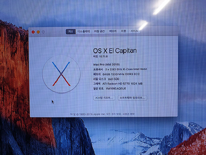 Model : Mac Pro 5.1, 2cpu x Six-core 2.93ghz 12core, ( 2010년 )
