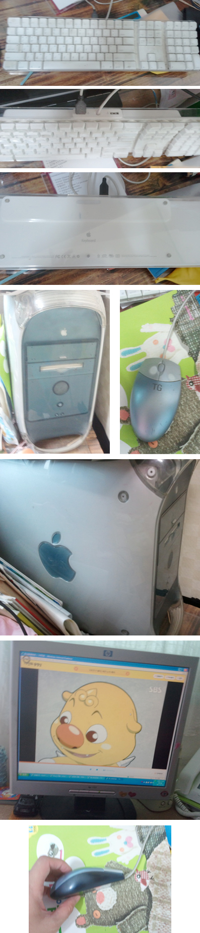 모니터 hp이구요, 키보드 애플꺼이구요 상태양호, 마우스 사용감 많습니다.제가 사양을 어떻게 보는지 몰라서여...^^;;내장메모리 1GBOS 버전 : 9.2.2용량 : 74.52 GB사용가능 : 71.15 GB사용됨 : 3.36 GB집에서 작업하던 컴퓨터입니다.재택 프리랜서로 일하던 ....