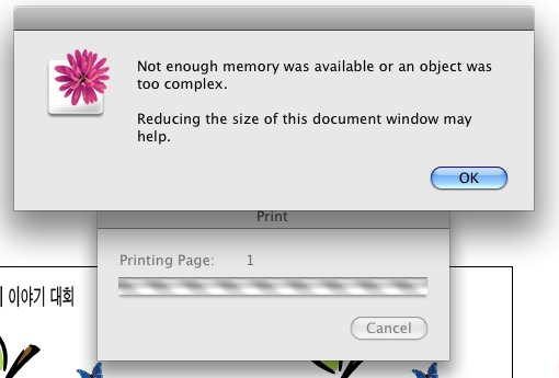 일러스트cs 프린트 시 발생하는에러입니다 파우맥 2.0-OX10.05