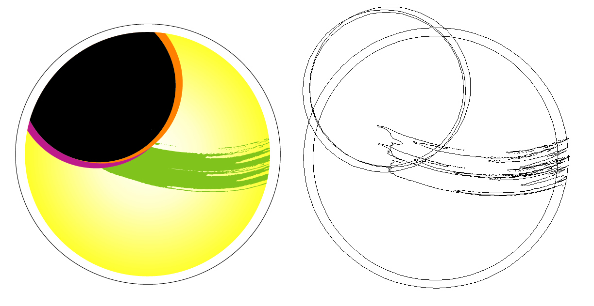 마스크...입니다.... 3가지 원하고 붓터치 오브젝트를 그룹지으시고 그라데이션 원 오브젝트를 복사해서 맨 위에 붙이신다음 그룹지은 오브젝트를 마스크 씌우면 됩니다.