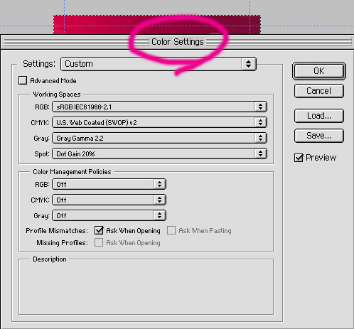 따라서 위의 셋팅화면에서 Woking Space 메뉴에 CMYK설정메뉴를