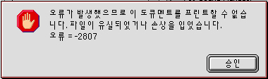 emoticon_096한글시스템의 프리퍼런스에서 프린팅 pref 폴더를 열고 그안의 파일을 모두 버리세요.