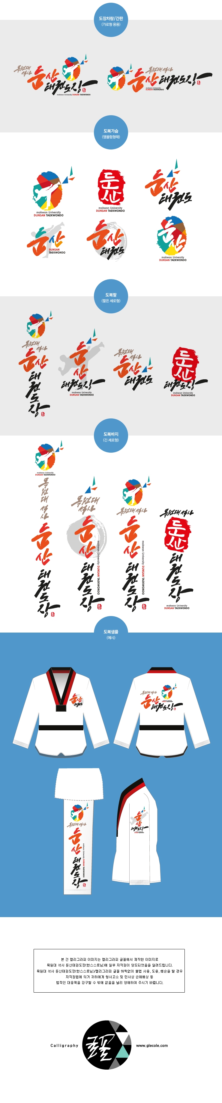 [캘리그라피글꼴]목원대석사 둔산태권도장 로고,마크,도복글씨,캘리그라피제작