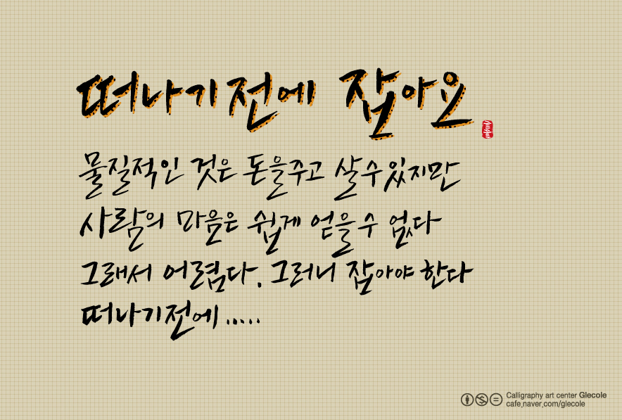 [캘리글꼴연구소]떠나기전에 잡아요