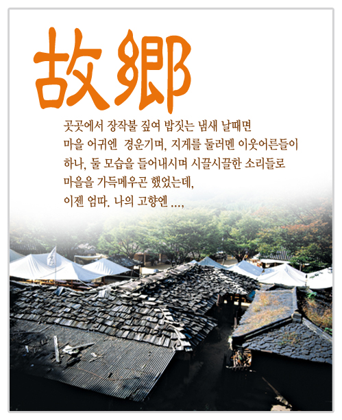 텐트가 하얀색, 깃발도 하얀색, 텐트 아래에 상들이 놓여있공..... 끙~~ 저런 분위기는 어려서, 말에 몬일이 생기면, 마니 보았는뎅... . . . . 그래둥 장작불에 밥짓는 냄새는 무쟈 그립습니당.