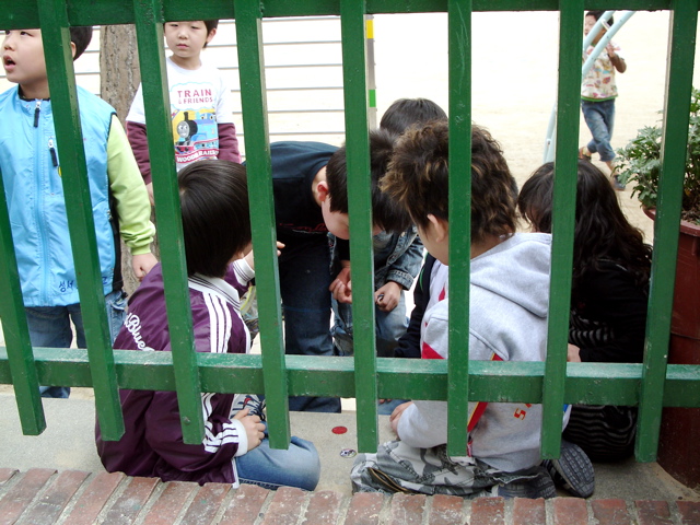 혼자 흙장난 하는 애.... 계단 새치기 하는 애.... ^^ 갖가지의 성격들...^^