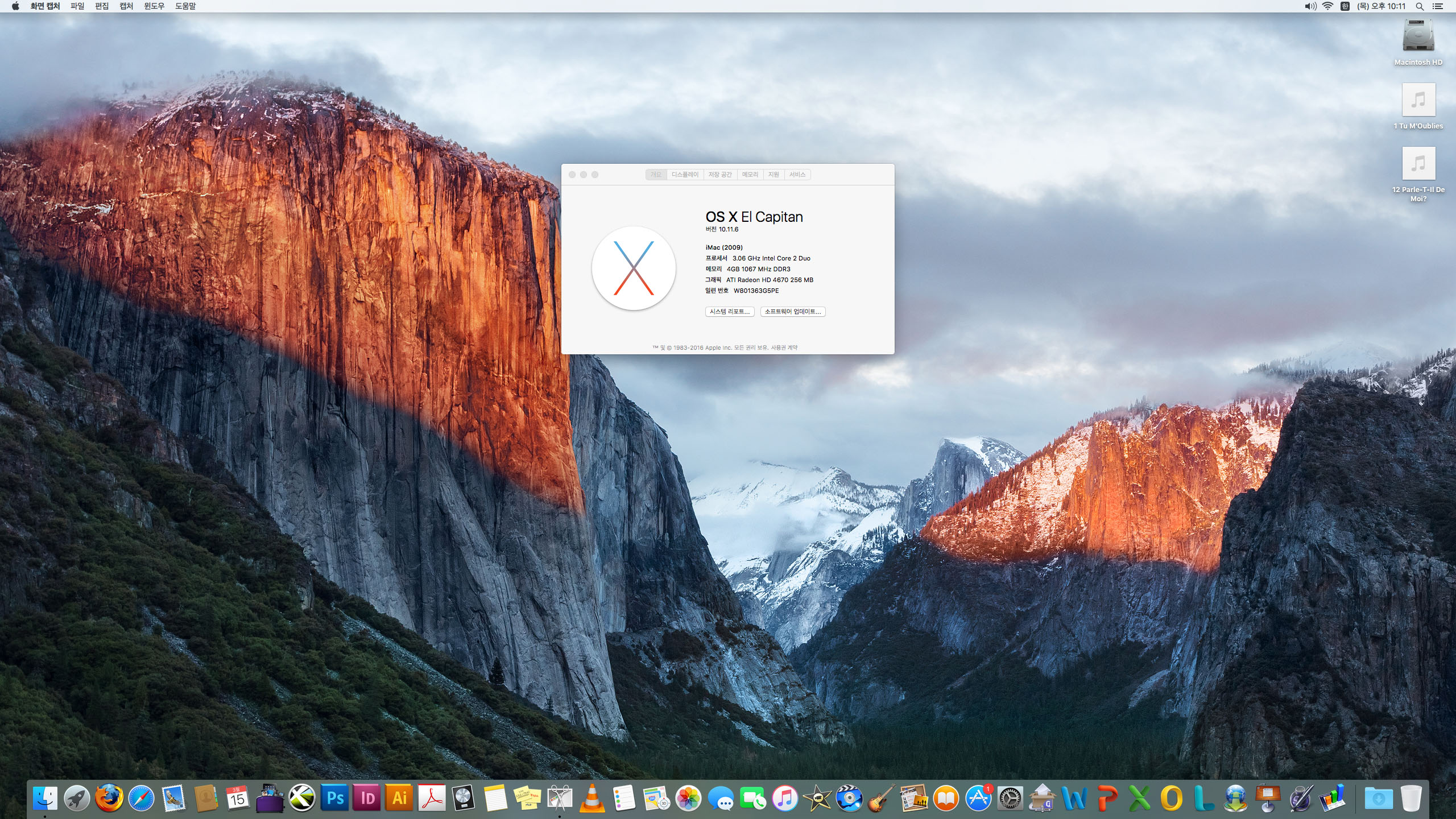 시스템은 엘캐피탄 설치되어 있습니다