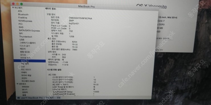 배터리 사이클 243  최대충전용량 7893