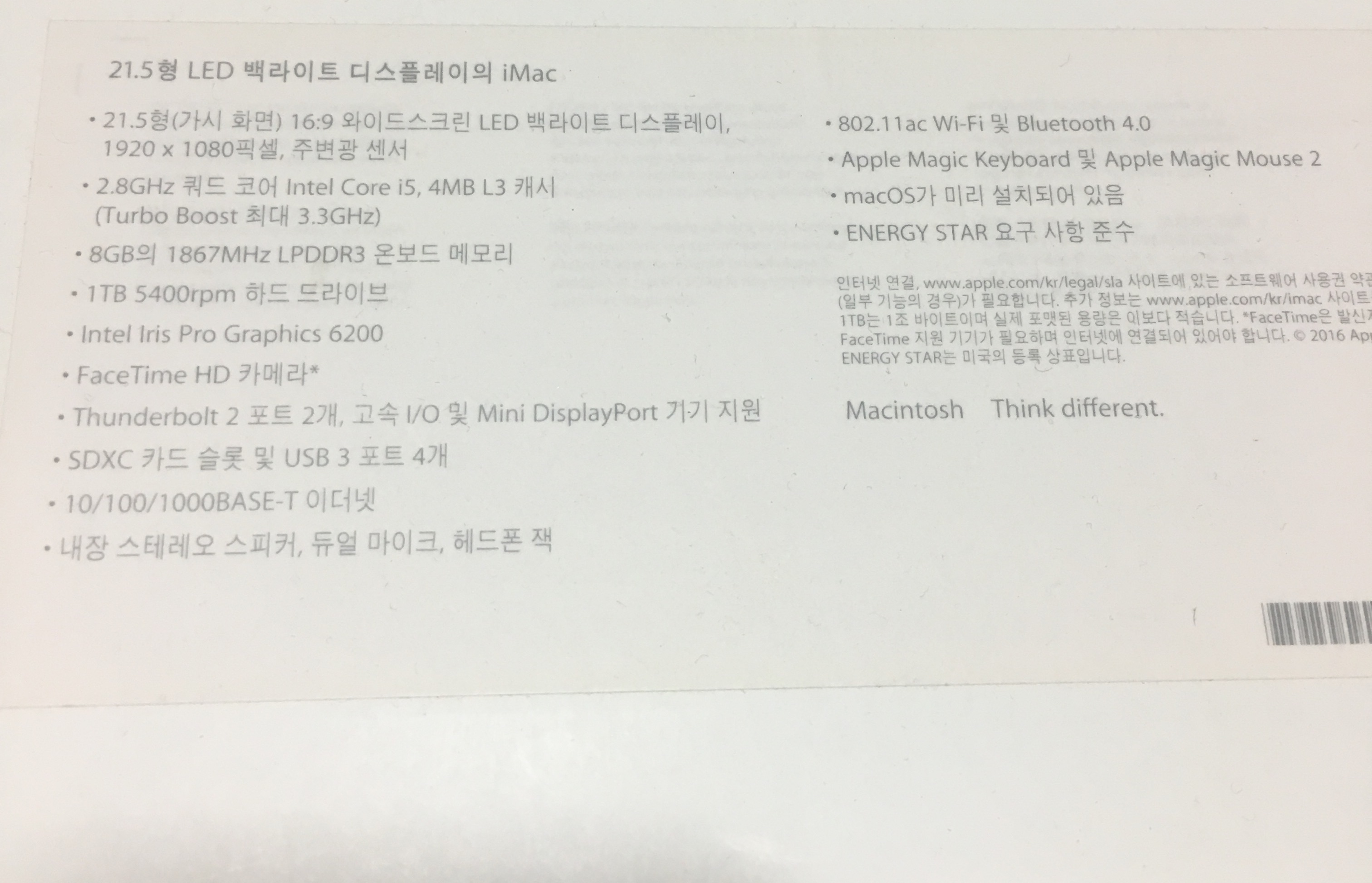 (선물가능)포장그대로, 2015 비레티나 21.5인치 고급형 판매합니다