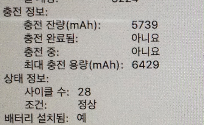 (cpu: i5 램 :8g ssd: 128g 사이클수 : 28)