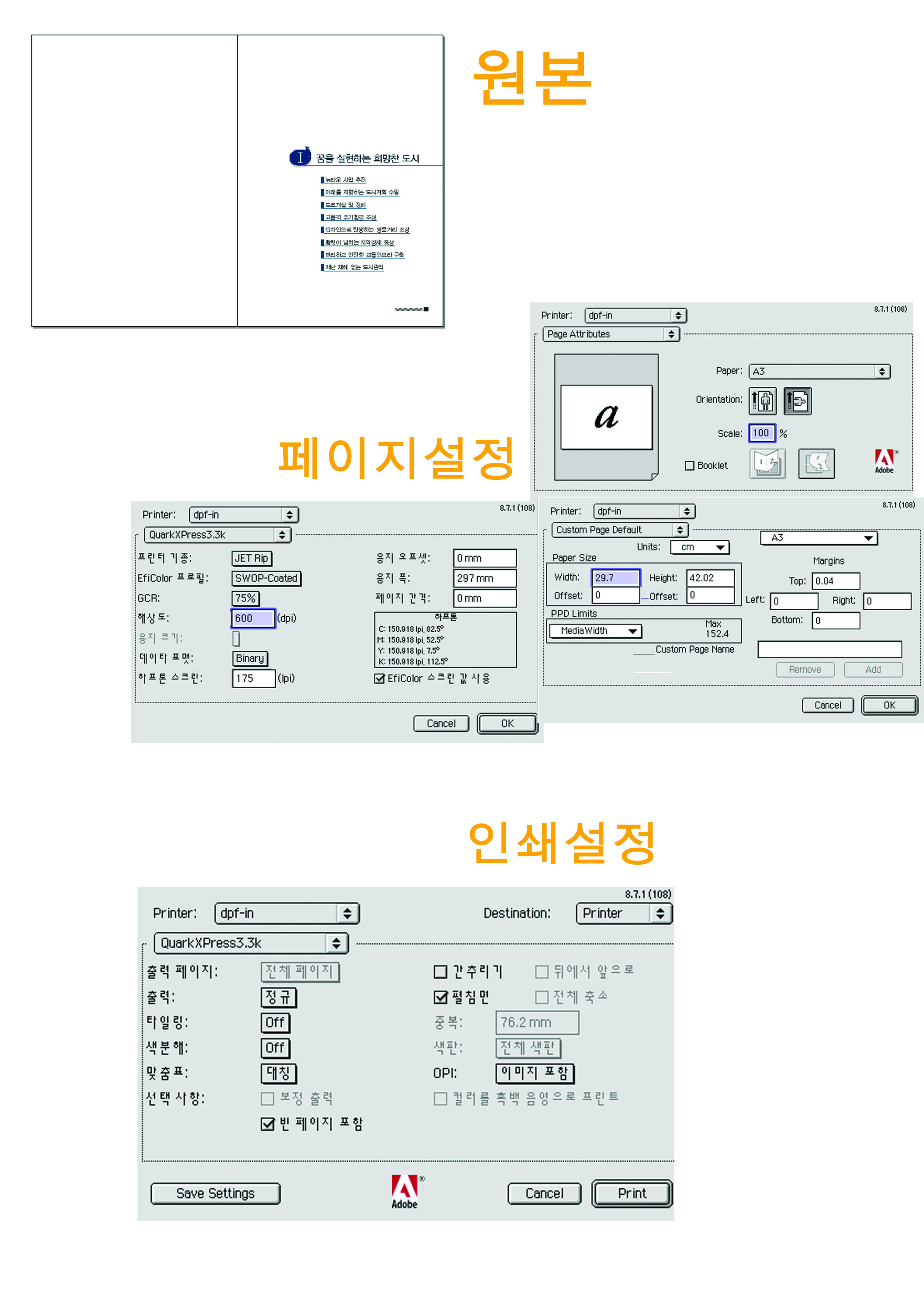 표지 세리카 작업시 쿽에서 페이지 설정하는법