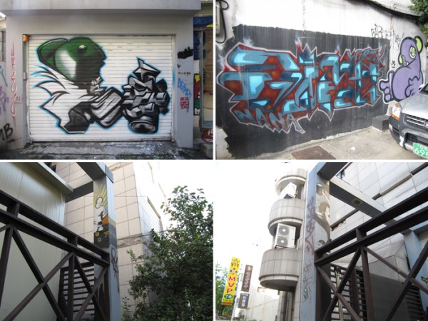동네 강아지들이 자기 영역을 표시하듯 정말 홍대 전역에 이런 표식이 되어 있다.