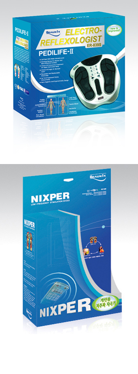 신발인데요.신발밑창에 저주파 장치가 있어서 리모콘으로 강약조절할수 있어요.지금나온 상품은 슬리퍼처럼생겼어요 해외에서는 인정받았는데.아직 국내에서는 몰르시는 분들이 많으신거 같아요.(약장수 같다^^;)후가공 쪽도 고려해볼께요. 약국 거치대에 걸이형으로 배치될것입니다