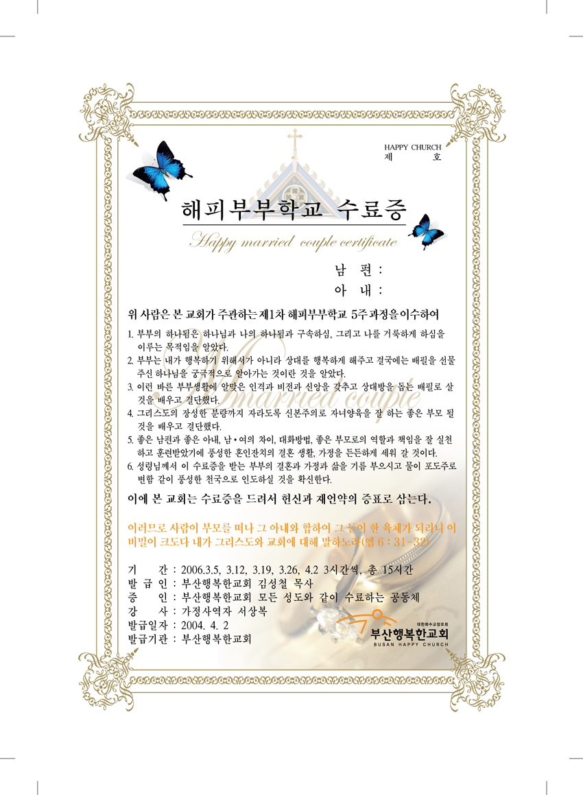수료증(부부학교)
