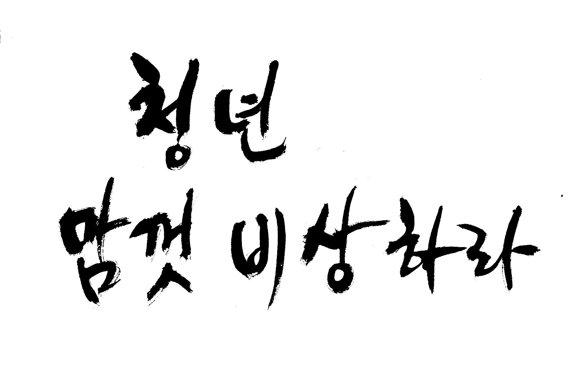 캘리 부탁해도 되나요?육사.. 김철호 일반 0 9215 2009.02.11 14:08 > > 육군사관학교 모집요강시안을 잡는데 > 캘리를쓰고싶습니다. > > <청년, 맘껏 비상하라 !> >