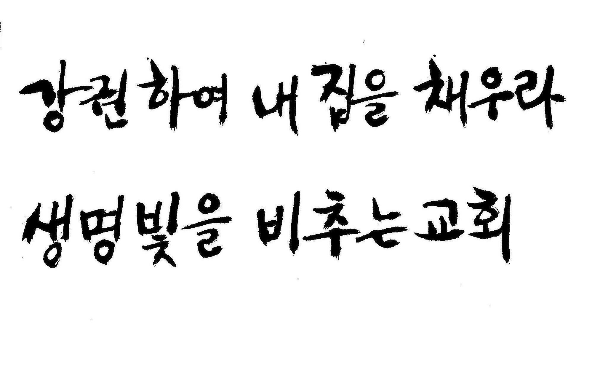 캘리 좀 부탁드립니다.^^ 감사합니다. 김철호 일반 0 8018 2009.01.06 22:42 > > > > > 교회에서 사용할 표어 제목입니다. > > > > 2009 강권하여 내 집을 채우라! > > 2009 생명 빛을 비추는 교회 > > > > 예쁘게 부탁드려요! 새해 복 많이 받으세요!! ^^ > > > "2009"는 2쪽에 이소영씨 캘리요청에 올려 놓은것을 쓰세요 > " 생명빛을"인데 "생명의 빛"이라고 했는데 편집하세요 먹 번짐이 있는 획은 약간 수정하면 좋을것 같네요..>