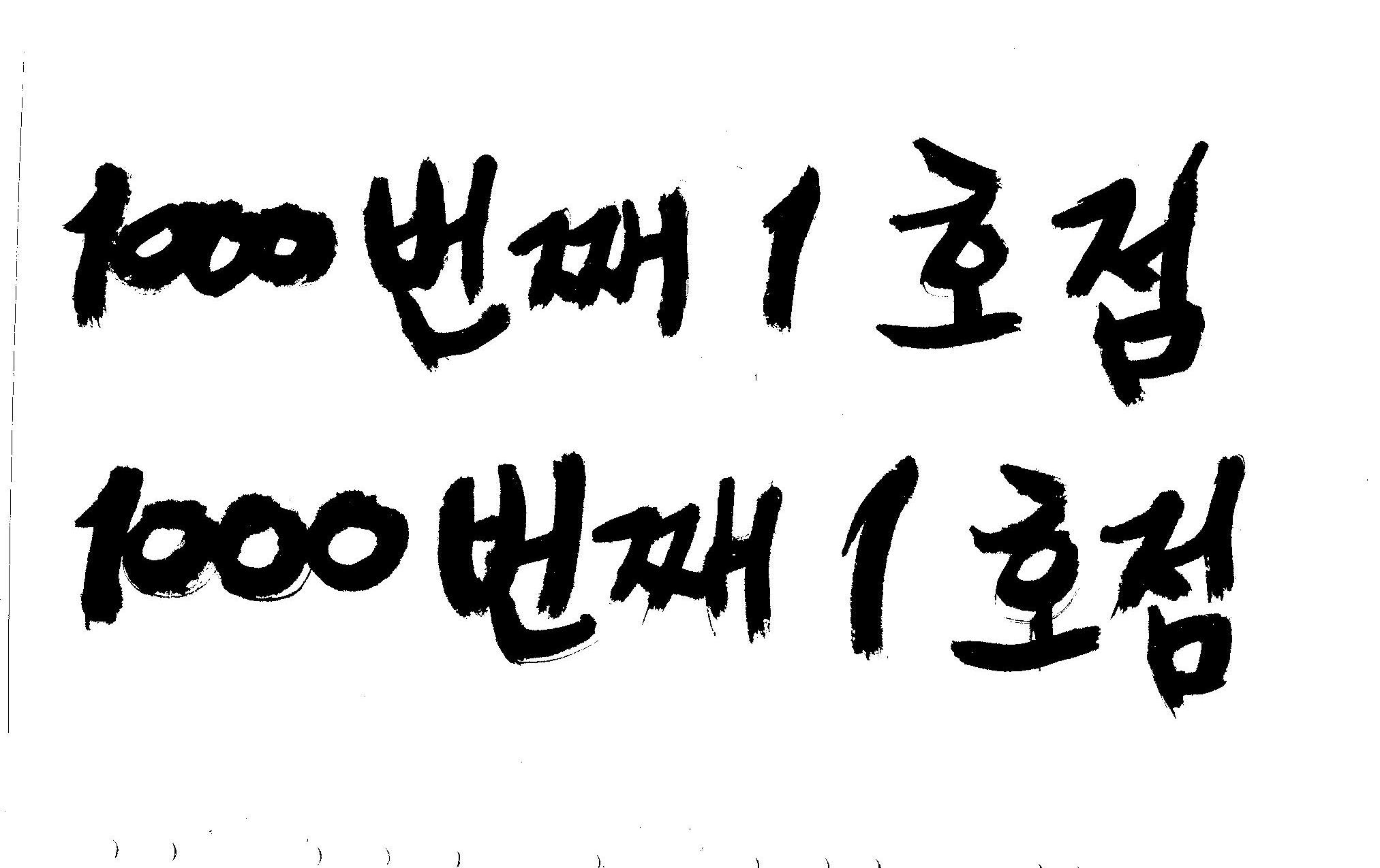 캘리하나 부탁드립니다(__) 김철호 일반 1 9774 2008.12.01 23:02 > > > > > 1000번째 1호점 > > > > 좀 강한 먹글씨로 부탁드리고자합니다...(__) > > > > 도와주셔요~ > > > > 늦어서 도움이 될런지... > 항상 캘리요청때는 > 언제까지라는 > 날짜와 함께 > 여유있게 하심..서로 좋죠 >